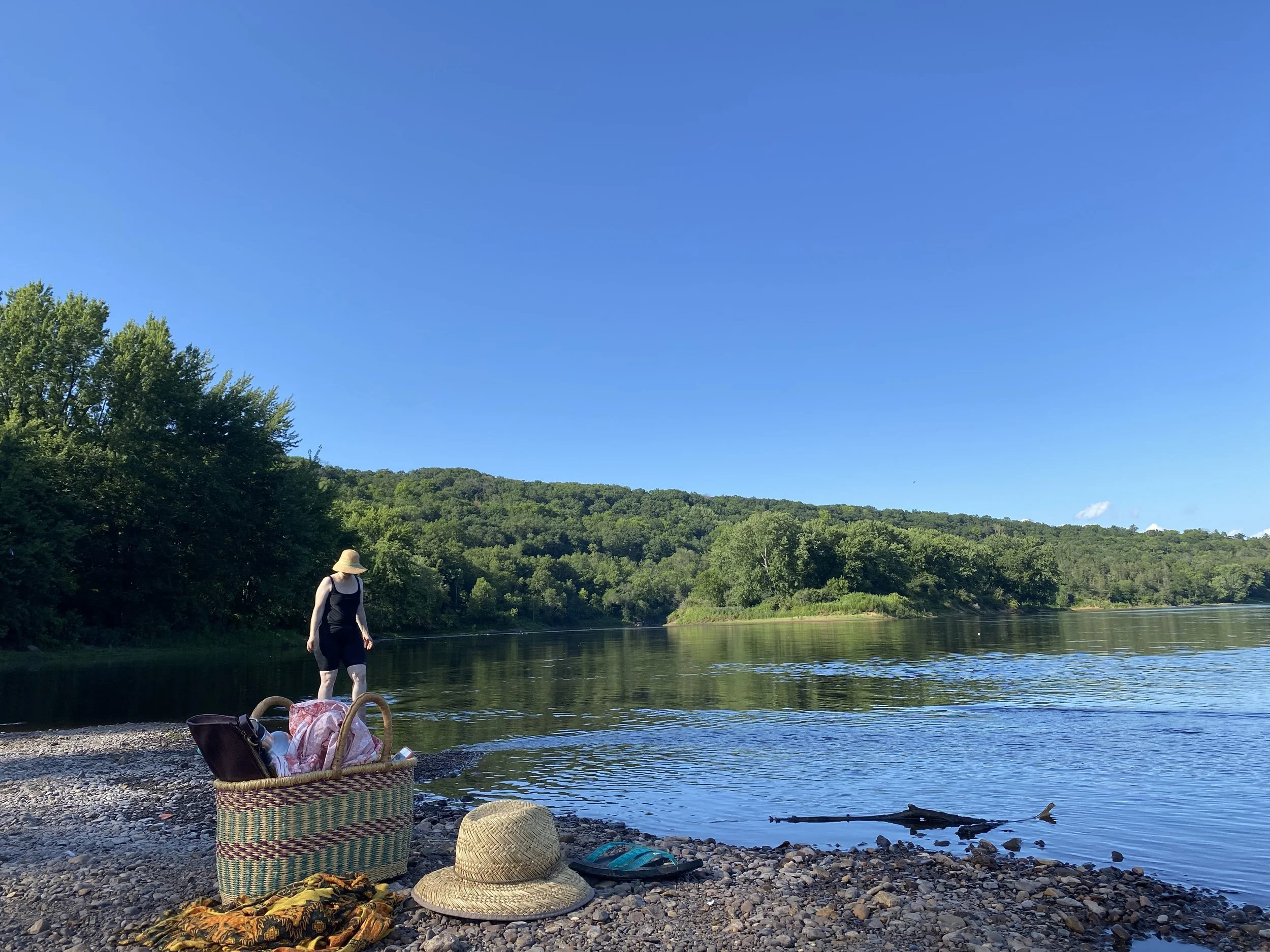 Last Friday we took a break from the heat and tried out a new beach on the St Croix River. This is on the shore of the river near Interstate Park’s campground and picnic area. A rocky beach with some gently moving water, and for the most part unoccupied. It was a delightful way to cool off before we headed to Osceola and dined at our favorite restaurant The Watershed Cafe’.